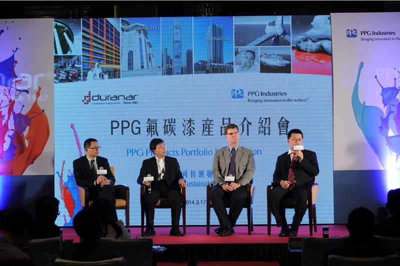 2014年4月8日,香港——PPG工業公司(紐約證交所代碼:PPG)近日在香港環球貿易廣場成功舉辦DURANAR(R)氟碳漆產品介紹會暨新品發佈會。來自國內外100餘名業內知名建築業主、建築設計師、建築顧問及幕牆協會會員受邀出席此次會議。